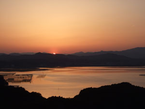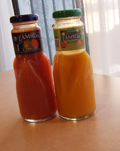 暮れなずむ夕日を背に、濃厚なフルーツジュースを頂く。