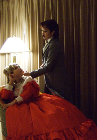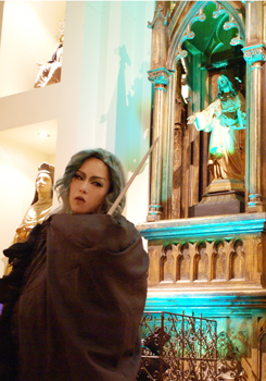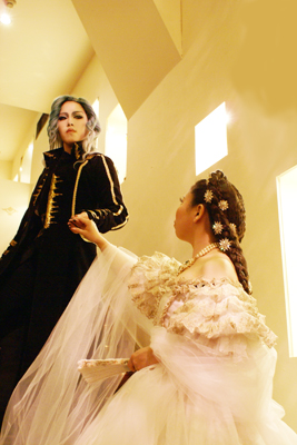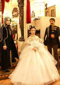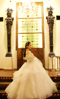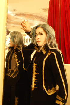 新作の天と地の間(♪全ての不幸をここに始めよう〜っと歌うシシィの結婚式のシーンの衣装ね)でございます。水トートのこのシーンすっごく思い入れ深いのでやっと出来た!材料腐る前に出来上がって何より!!(笑)