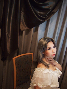 ウイッグと髪飾りの帽子、ドレスの装飾を少々手直ししましたがあまり成果は出ていないようです(涙)