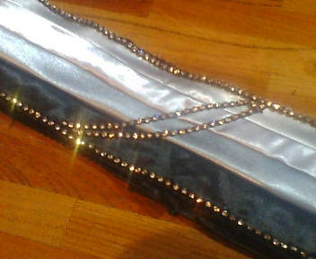 18時半の猫さん大阪便最終集荷までに荷物詰めるべく衣装を完成させ無ければならなかったので…鬼のようにラインストーン縫いまくってました。それでもサッシュが終わらなくて、今やっと完成。
