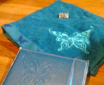 なんだか知らんがハンドタオル&ポケットパウチのセット・メモ帳・ポストカードを買う妹。