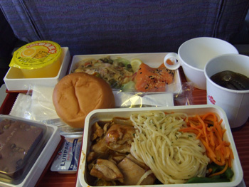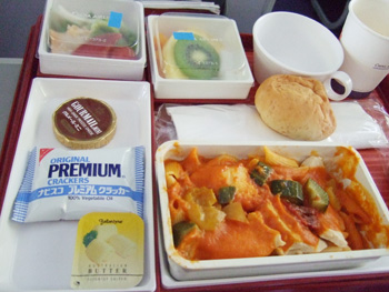 帰りの飛行機はうとうとしている間に機内食を与えられ、