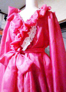 ショッキングなピンクでフリル一杯の部屋着。