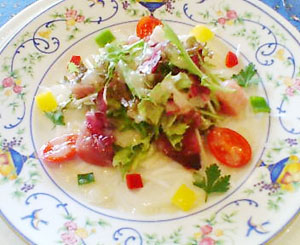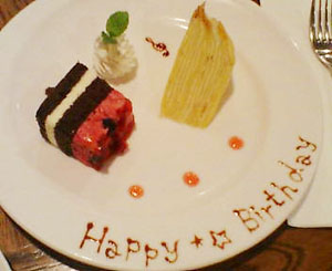 地の野菜を使った優しいお料理と、食器の可愛さ、気軽な雰囲気で大のお気に入りレストラン。今日はバースデーのスペシャルメニュー☆