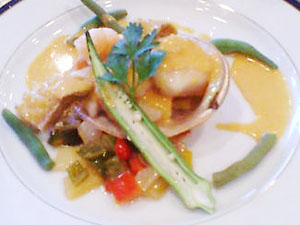 お魚料理はエビ・ホタテ・アワビ・シーラをオマール海老のソースでv