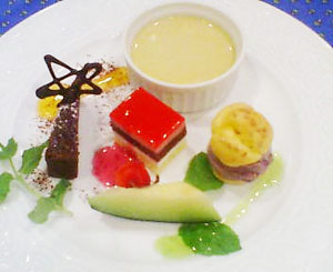 デザートのプレートにあるピスタチオのババロアはこのお店の名物らしい。かなり美味しい!!