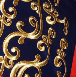 金モチーフをベルベットに並べてみたり、ジャガードに並べてみたりしているだけで楽しいのです。