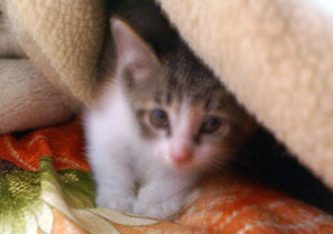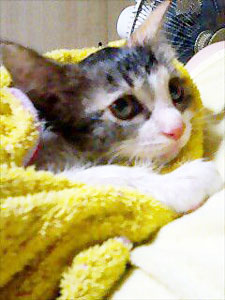 昨日までは顔を見るだけで逃げ惑っていたのに、今日は膝の上で寝ましたよ。